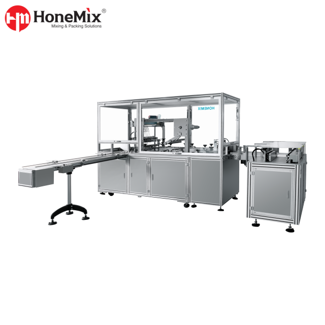 The HONEMIX unit is an automatic Transparent Film Packaging Machine developed for box and carton overwrapping with BOPP, PVC, and tear tape. It is suitable for single-box or multi-box packaging and performs automatic product feeding, film wrapping, folding, side sealing, end sealing, upper and bottom shaping, counting, and tear-tape application in one integrated process.