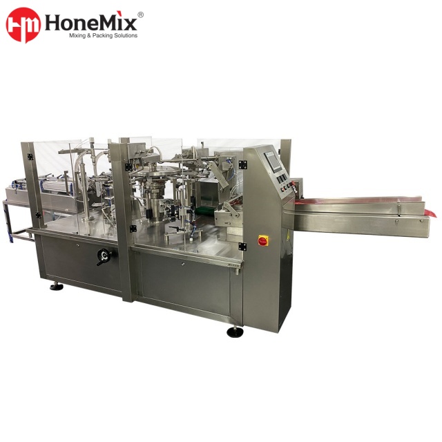 The HONEMIX SPF-S-300 is an automatic stand pouch packaging solution developed for liquid and semi-liquid products that require accurate filling and dependable sealing. It is especially suitable for manufacturers that want to improve packaging quality, reduce manual dependence, and maintain a more consistent production process.